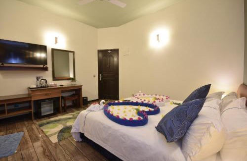 A good location for a relaxing holiday in Ukulhas, Island Home Inn is a guest house surrounded by views of the garden. The property features a private beach area, spa and wellness center, and parking on-site among other facilities. Among the facilities of this property are a restaurant, a 24-hour front desk, and luggage storage space, along with free Wifi throughout the property. The property offers bike rental and features a garden and sun terrace. The units at the guest house come with air conditioning, a seating area, a flat-screen TV with streaming services, a safety deposit box, and a private bathroom with a walk-in shower, a hair dryer, and free toiletries. A toaster, a fridge, and minibar are also featured, as well as a coffee machine and a kettle. At the guest house, the units come with bed linen and towels. Continental and American breakfast options with pancakes, fruit, and juice are available. There is a coffee shop, and packed lunches are also available. Guests can stay active with the fitness classes held on site. For guests with children, the guest house offers an indoor play area, outdoor play equipment, and a baby safety gate. Guests at Island Home Inn can enjoy table tennis on-site, or go cycling or walking tours in the surrounding area. Ukulhas Beach is a few steps from the accommodation.