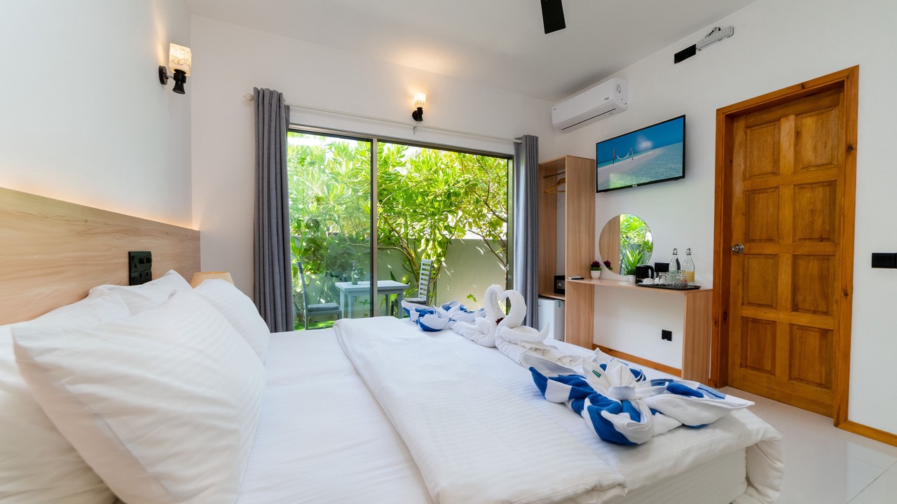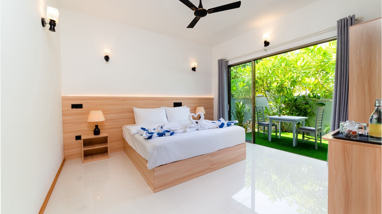 GeneralNumber of living rooms 0, Ping - 4.4, Number of bedrooms - 0, Garden view, Square meters - 14.5, Bed count minimum 2, Square feet - 156, Bed count maximum 2 |